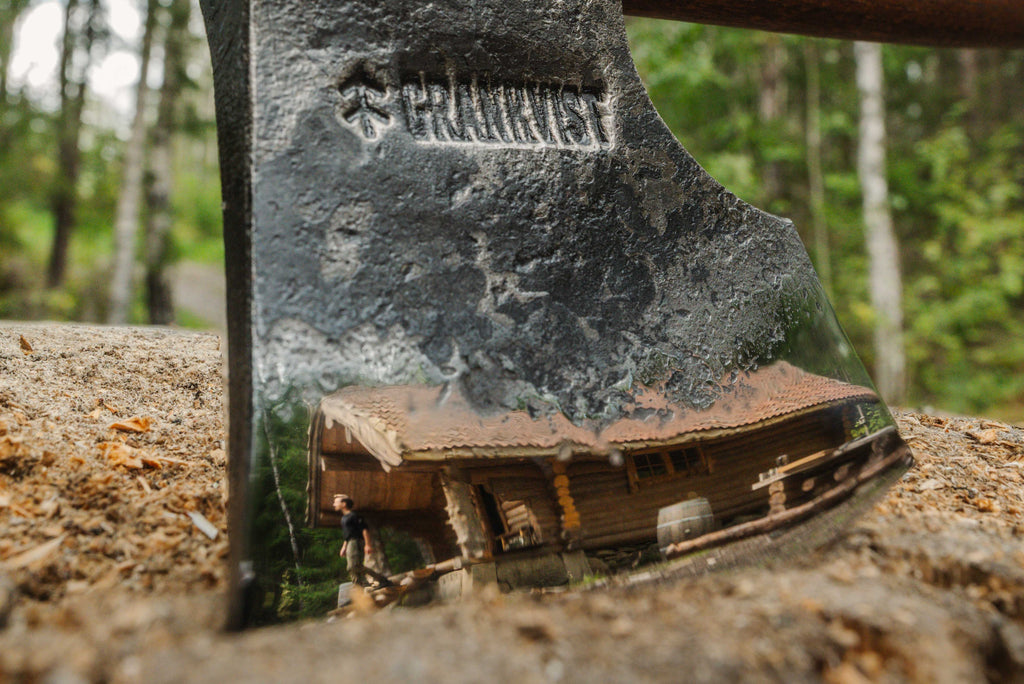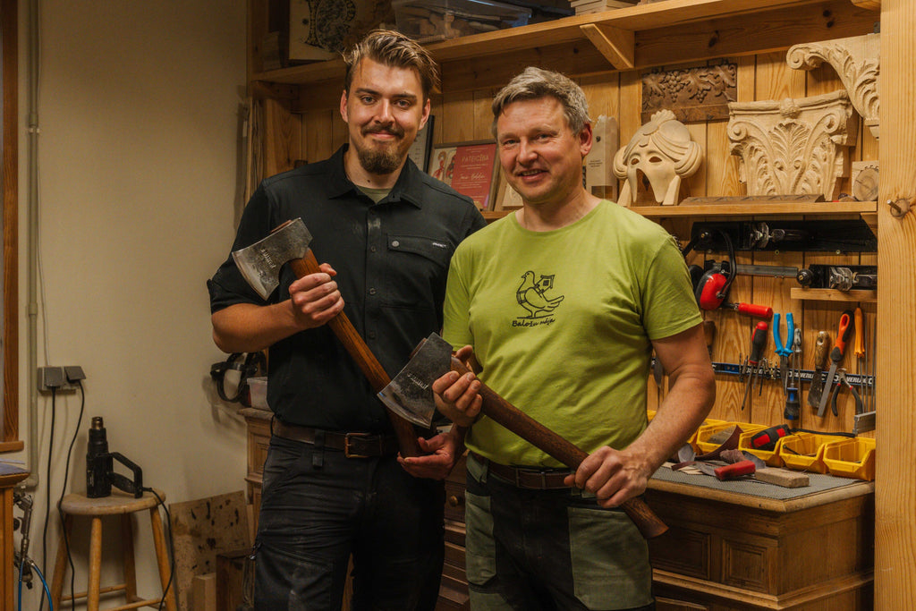 Janis crafts the handles in a workshop attached to the house where he lives with his family. He chooses the wood, carves and sands every handle to fit its own unique axe head perfectly.