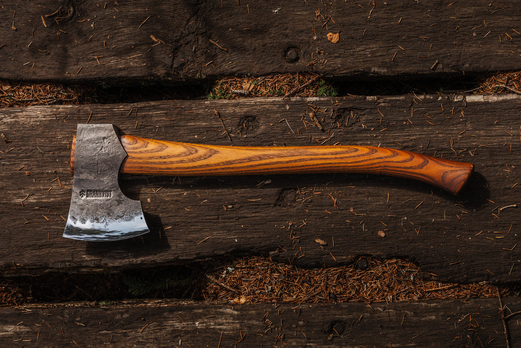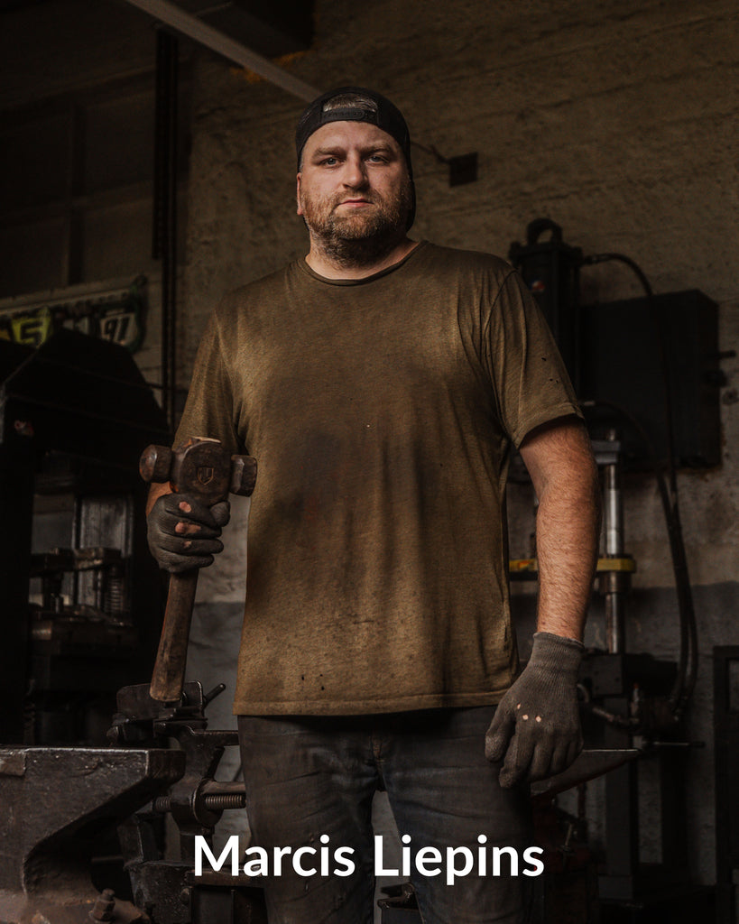 Marcis forges the axe heads in his own forge. Hard work goes into hammering and shaping them all by hand and eye. You can see it in the marks he leaves on every axe, making them all unique.